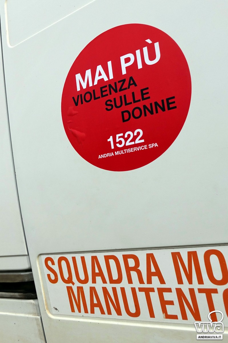 Il 25 novembre, e nel corso della settimana seguente, tutti i mezzi motorizzati dell'Andria Multiservice esporranno un adesivo di sensibilizzazione con la dicitura e l'indicazione del numero emergenziale 1522.
