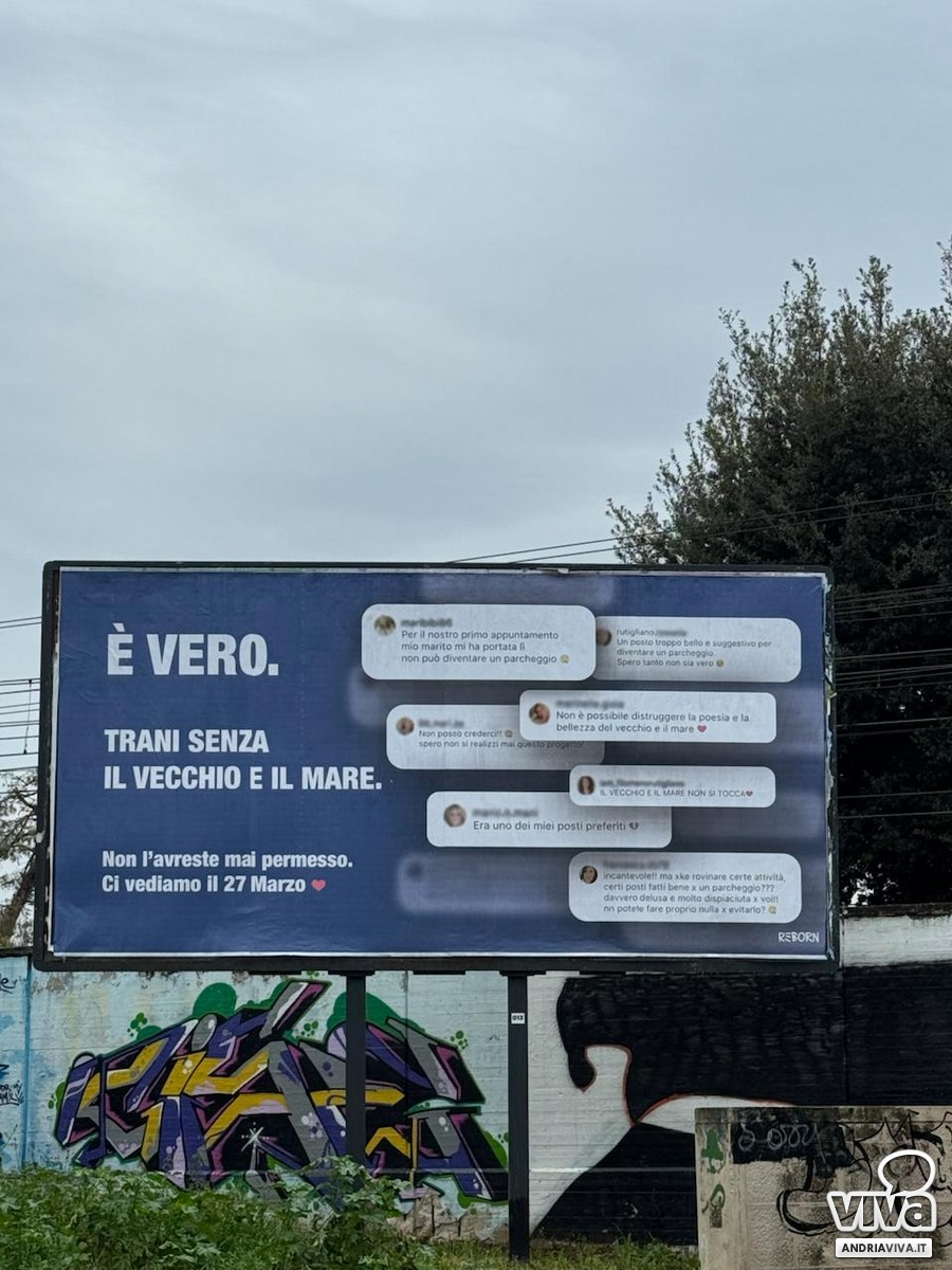 Per alcuni giorni, a Trani, in molti ci hanno creduto davvero: "Il Vecchio e il Mare" stava per chiudere e trasformarsi in un parcheggio. Manifesti affissi in città, immagini realistiche generate con l'intelligenza artificiale e un messaggio piuttosto chiaro – "Addio Vecchio. Addio Mare" – hanno acceso dubbi, discussioni e preoccupazioni.