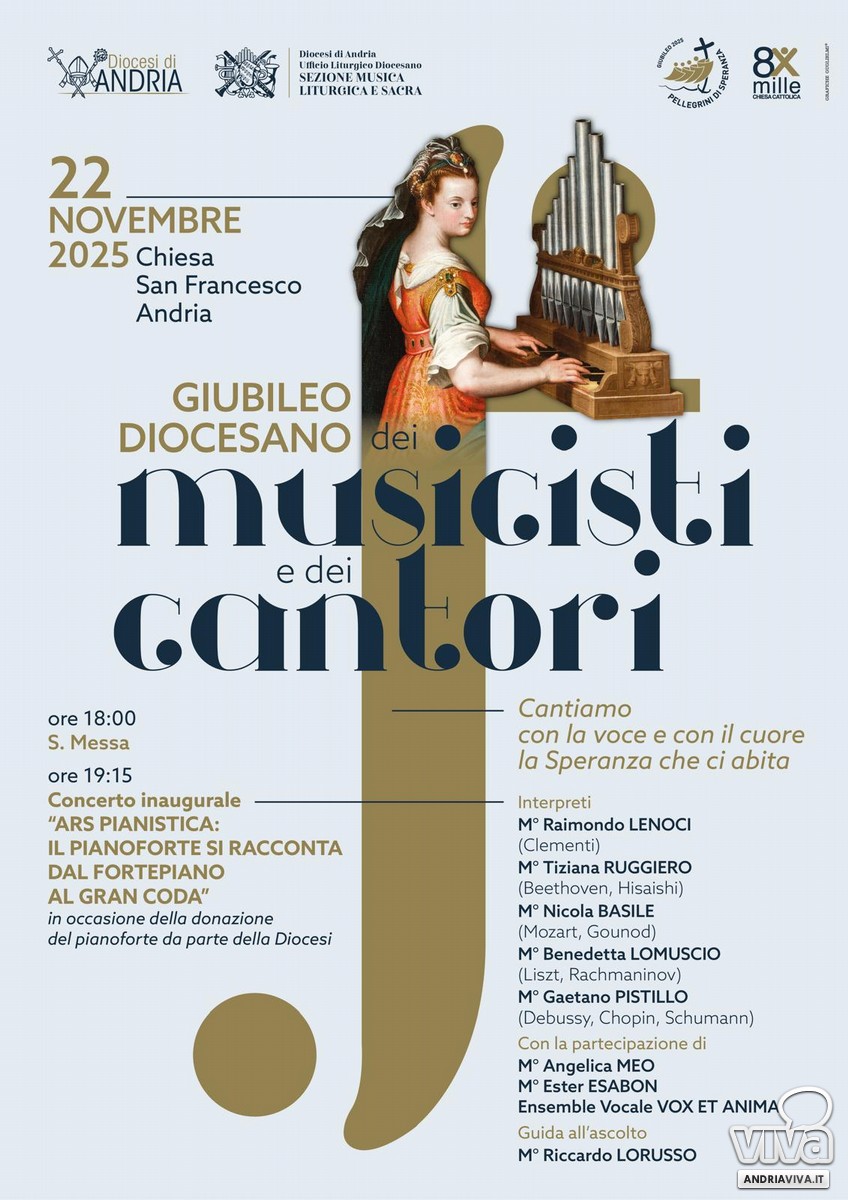 Sabato 22 novembre, in occasione della memoria di Santa Cecilia, patrona dei musicisti, la Diocesi di Andria celebra il Giubileo dei cantori e degli animatori del canto e della Musica Sacra.
