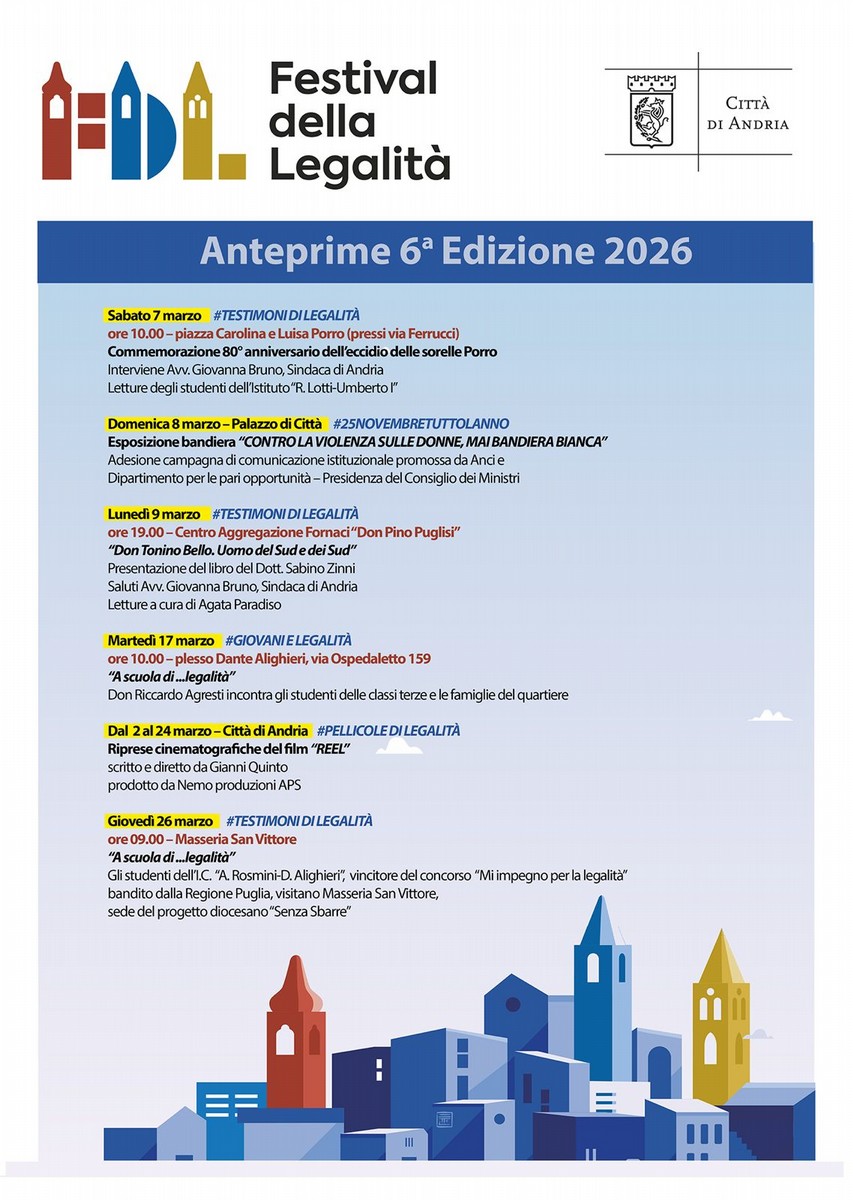 Al via le Anteprime del Festival della Legalità ad Andria: il programma completo