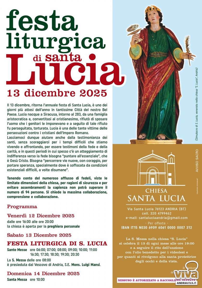 Sabato 13 Dicembre 2025 Festa liturgica in onore di S. Lucia