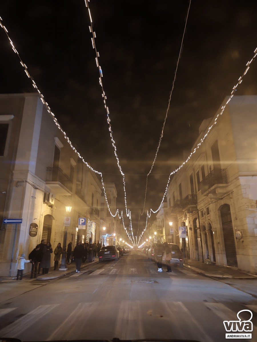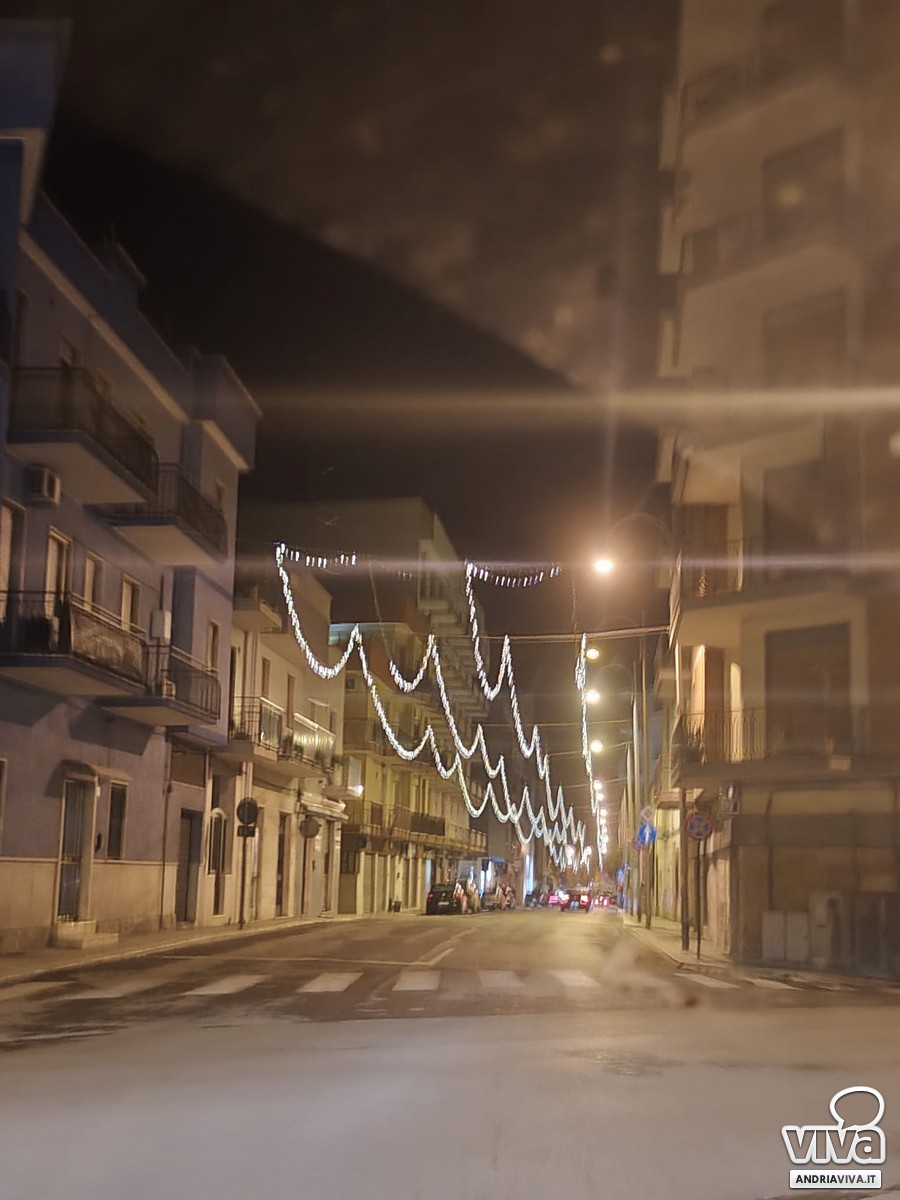 Il Natale è ormai alle spalle, ma nel centro di Andria le luci natalizie continuano a brillare. Le luminarie, installate durante le festività, sono ancora accese lungo le principali vie cittadine, suscitando critiche tra molti residenti.