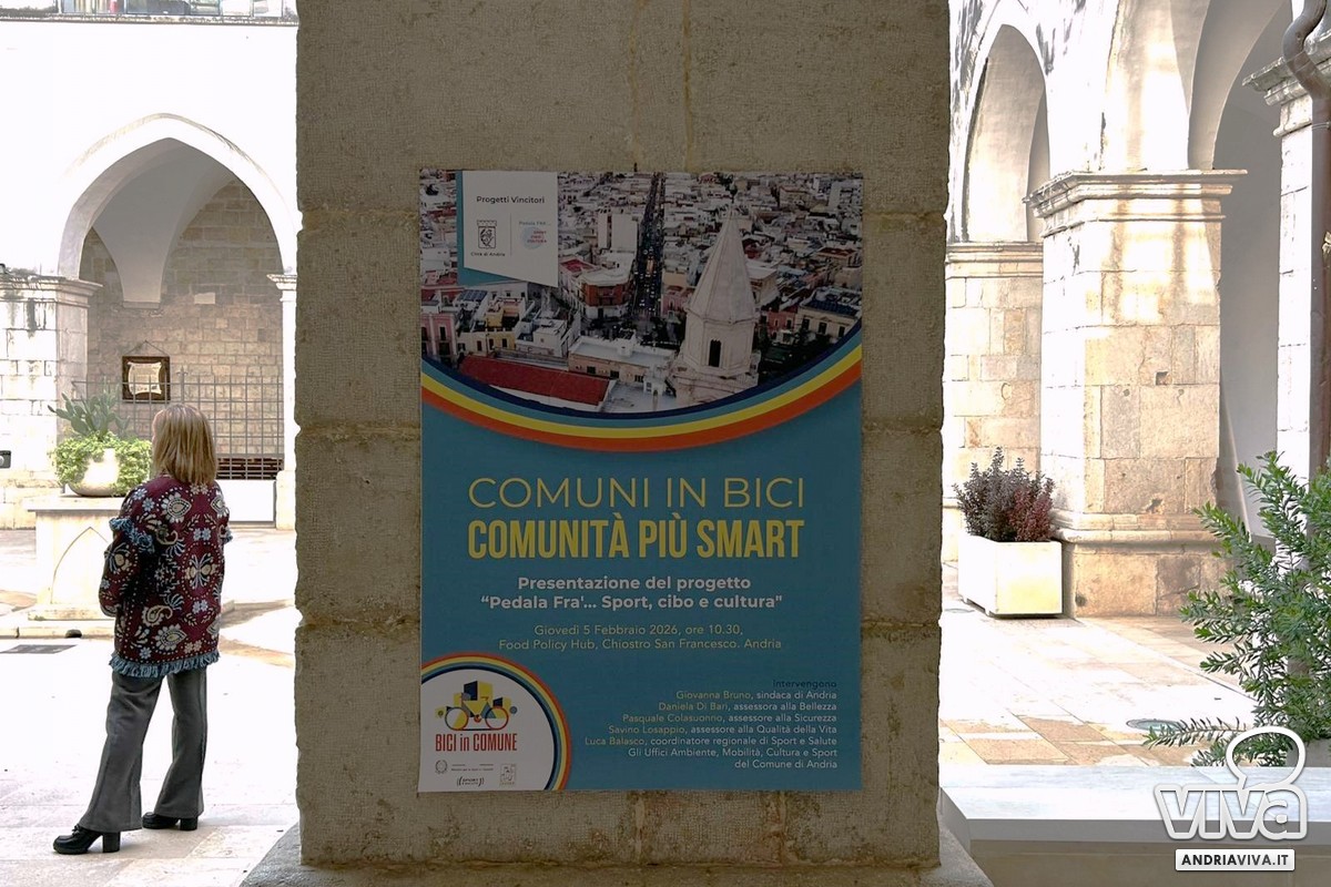 Andria ottiene 113mila euro dal bando nazionale "Bici in Comune" e diventa l'unica città della Bat ammessa al finanziamento. Il progetto vincitore, "Pedala fra'… sport, cibo e cultura", è stato presentato questa mattina al Food Policy Hub nel corso di una conferenza stampa alla presenza della sindaca Giovanna Bruno, degli assessori Pasquale Colasuonno, Daniela Di Bari e Savino Losappio, insieme al coordinatore regionale di Sport e Salute Luca Balasco.