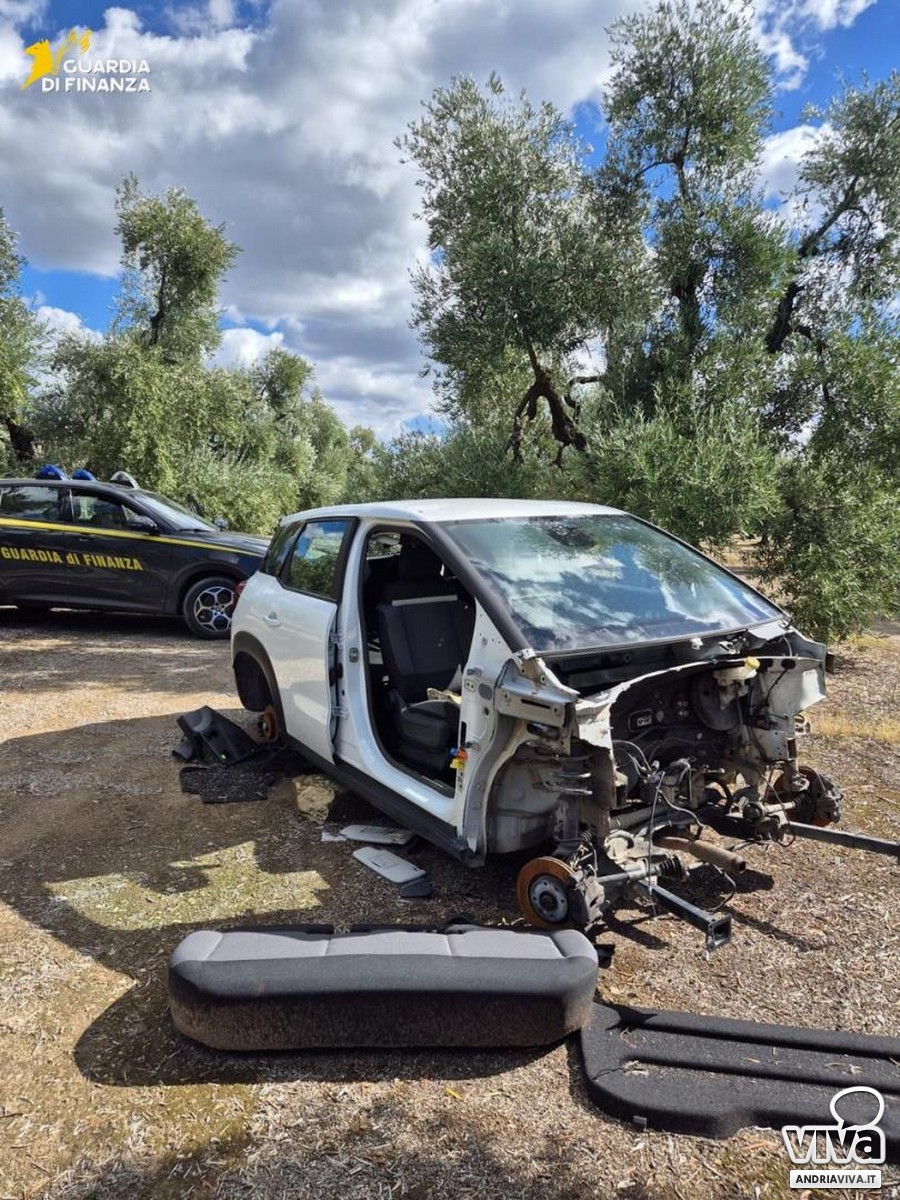 Nel corso di un'operazione di ricognizione aerea finalizzata al controllo del territorio, i militari del Reparto Operativo Aeronavale della Guardia di Finanza di Bari hanno individuato 14 autovetture rubate, nascoste nelle campagne tra Trani, Corato, Andria e Canosa di Puglia. Le auto sono state localizzate grazie alle missioni di sorveglianza condotte con un mezzo aereo in dotazione alla Sezione Aerea di Bari. Undici veicoli sono stati rinvenuti completamente smontati e privi di targhe, mentre altri tre presentavano ancora la targa ma erano già parzialmente cannibalizzati, con diversi componenti asportati.