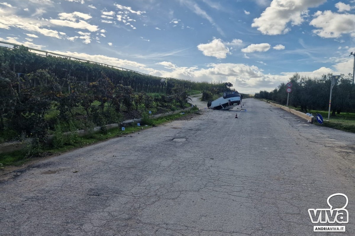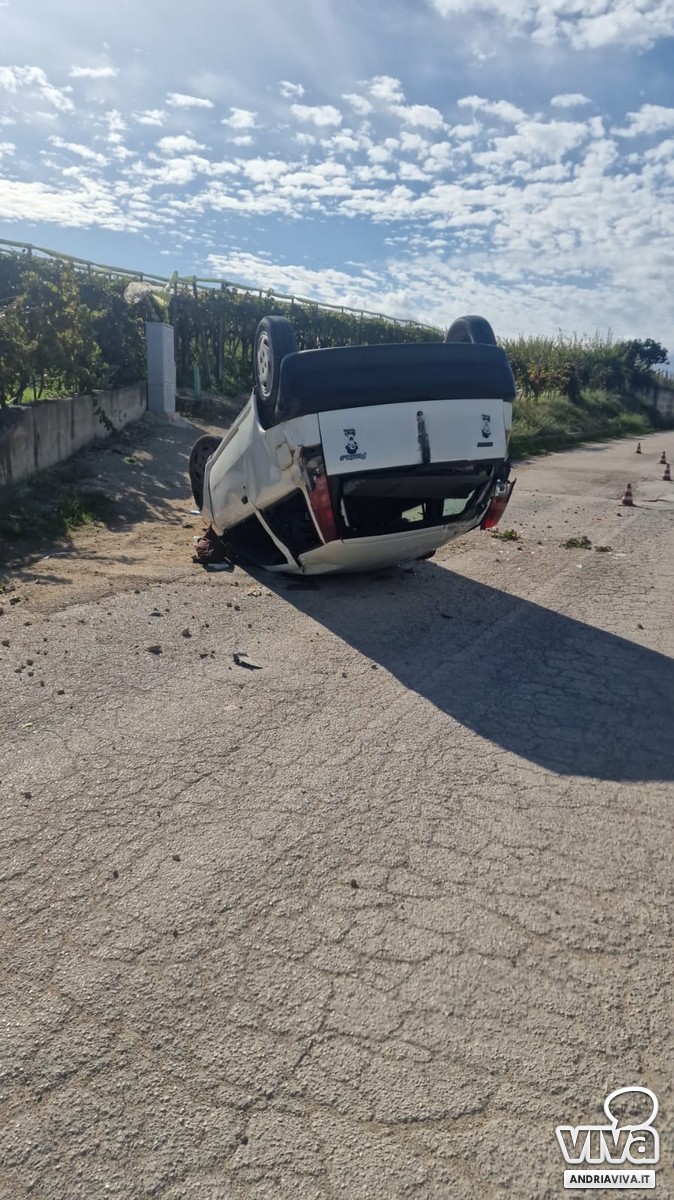 Auto si ribalta sulla SP 12 in agro di Andria. È accaduto stamane intorno alle ore 10, sulla strada provinciale Barletta-Minervino, in un tratto di strada dissestato.