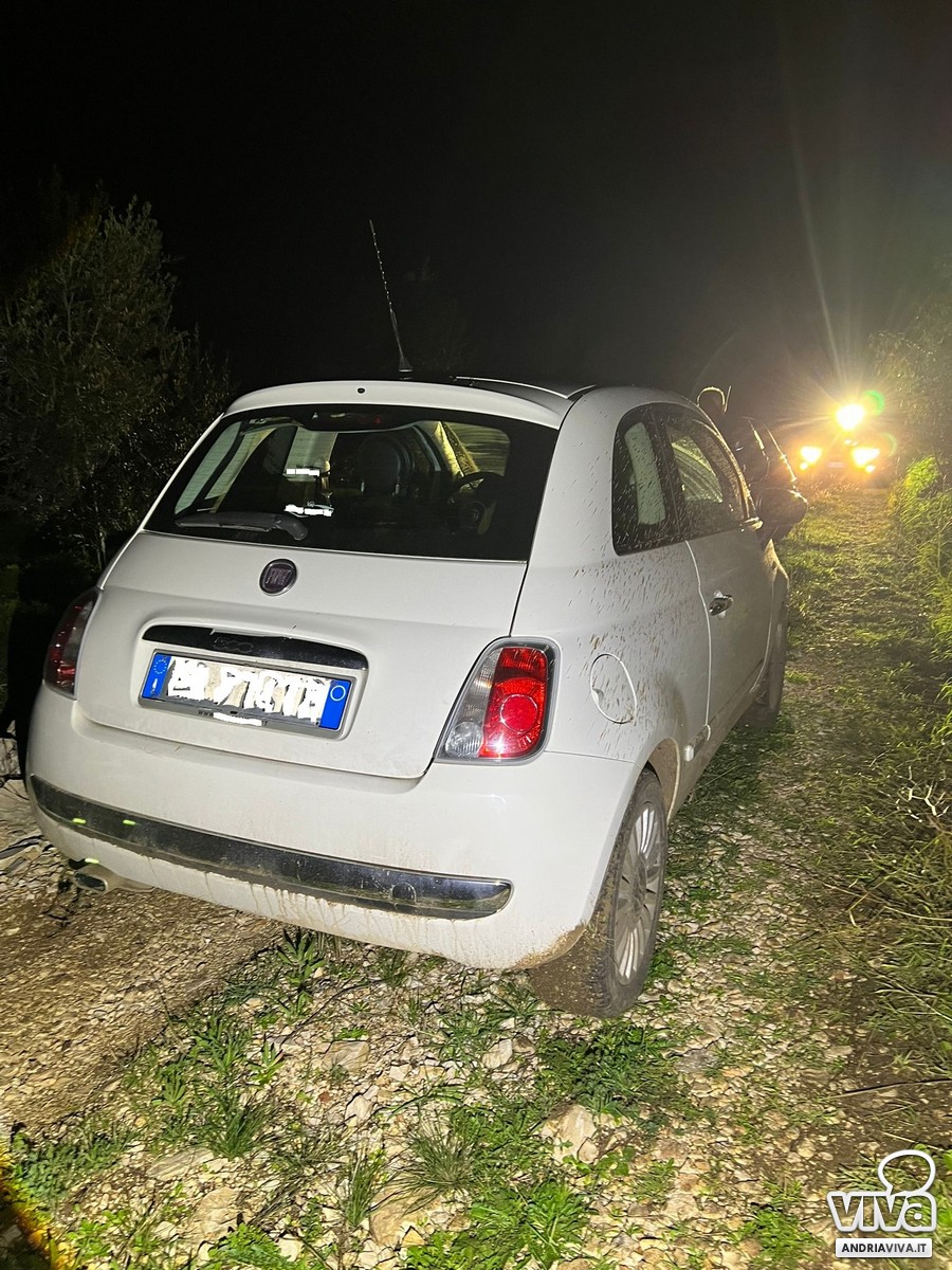 Per una nuova 500 i malviventi non hanno fatto in tempo a cannibalizzarla. Sono state rinvenute questa mattina, poco dopo le ore 4 in contrada Monachelle, nei pressi di via Barletta, due autovetture Fiat nuova 500, risultate rubate entrambe ad Andria, dalle guardie giurate particolari della Vigilanza Giurata, impegnate in uno dei consueti giri di controllo delle proprietà dei propri associati.