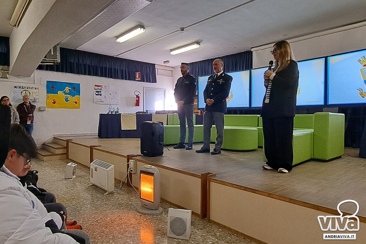 Il Dirigente scolastico, il corpo docente e gli studenti delle classi del biennio e del triennio hanno accolto i poliziotti della Questura BAT che, attraverso un approccio interattivo e l'utilizzo di slide informative e filmati ispirati a esperienze reali, hanno affrontato le delicate tematiche del bullismo e del cyberbullismo, fornendo al contempo utili indicazioni sui comportamenti da adottare.
