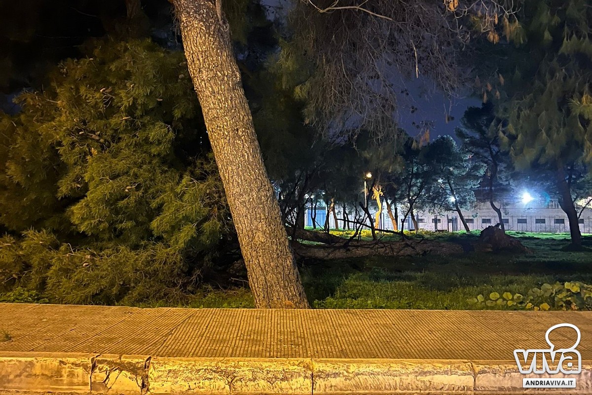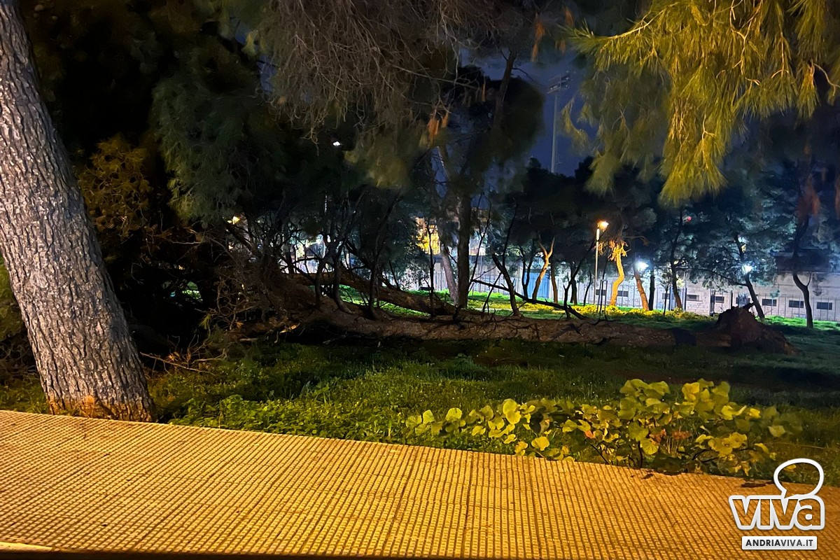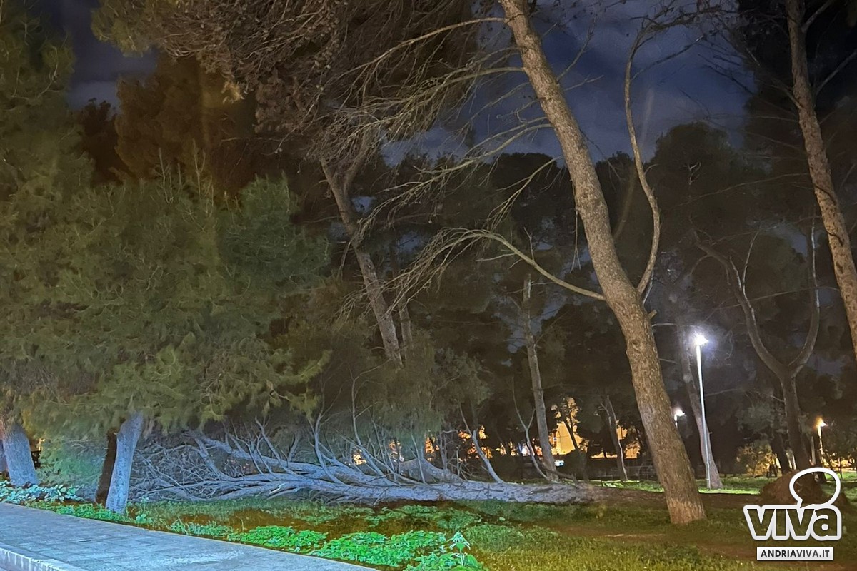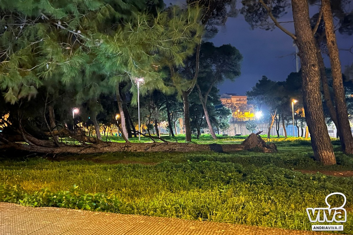 Ennesima tragedia evitata ad Andria. Nella notte un altro albero di pino è caduto nella pineta della villa comunale, a quell'ora completamente sgombra dai tanti sportivi che nei giorni di festa l'animano.