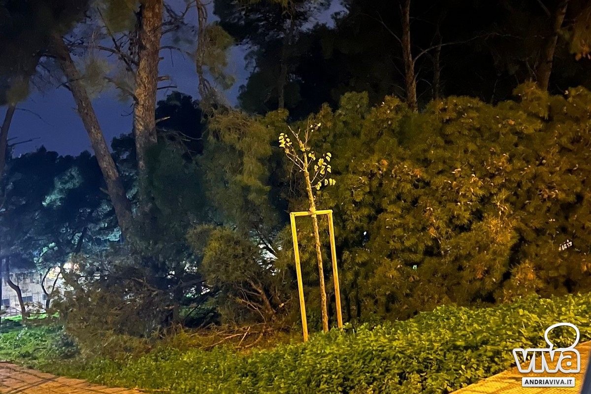 In mattinata i Vigili del fuoco, la Polizia locale e gli operai dell'AndriaMultiservice, sono quindi interventi all'interno dell'area verde per mettere in sicurezza un secondo albero pericolante.