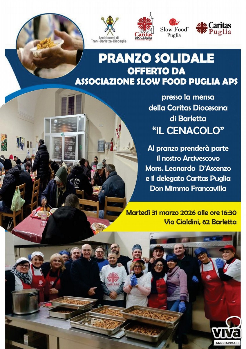 Quest'anno alcune mense gestite dalle Caritas diocesane dei capoluoghi pugliesi, espressione della Chiesa presente in tutti i territori, condivideranno insieme all'Associazione Slow Food Puglia un pasto conviviale.