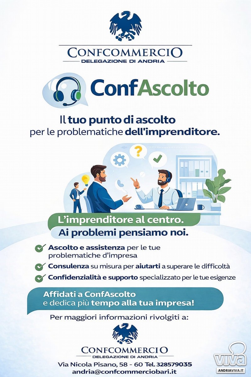 ConfAscolto, alla Confcommercio di Andria un nuovo servizio per le imprese