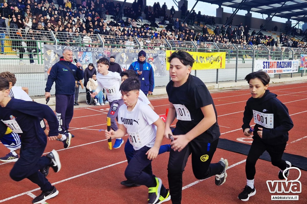 Mercoledì mattina 50 alunni della scuola primaria e 46 della scuola secondaria di primo grado dell'Istituto Oberdan-Pertini di Andria si sono messi in gioco nella straordinaria manifestazione sportiva "La Corsa di Miguel - La maratona", svoltasi presso lo stadio Sant'Angelo dei Ricchi. Un evento avvincente che ha visto gareggiare numerose scuole in una coinvolgente corsa a staffetta, in un clima di entusiasmo, partecipazione e sana competizione.