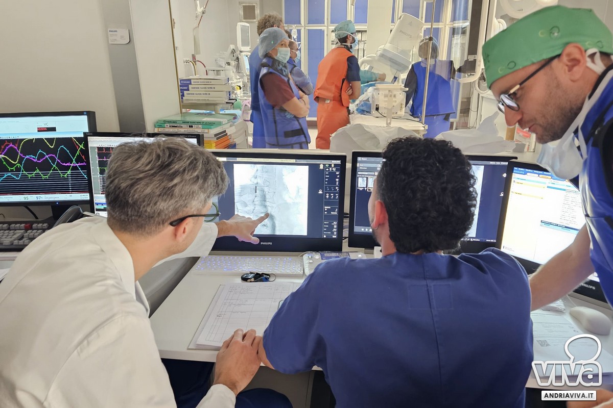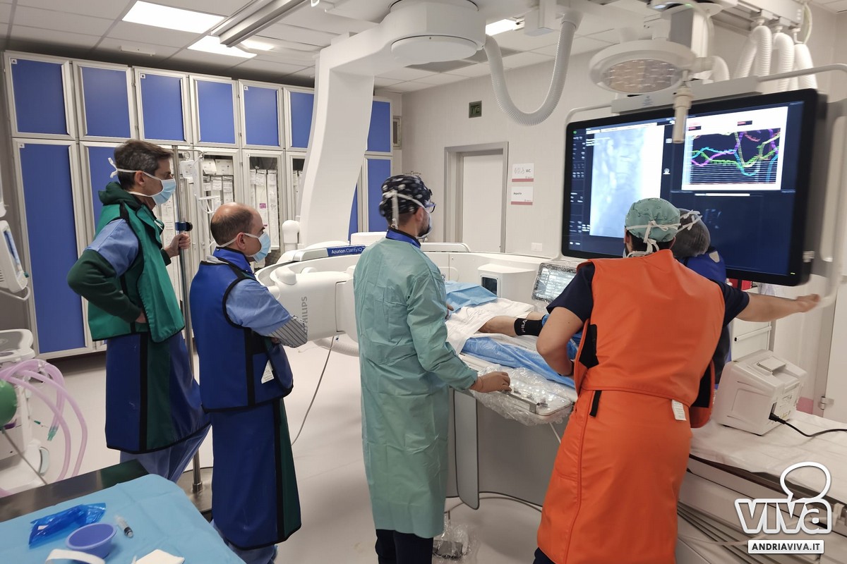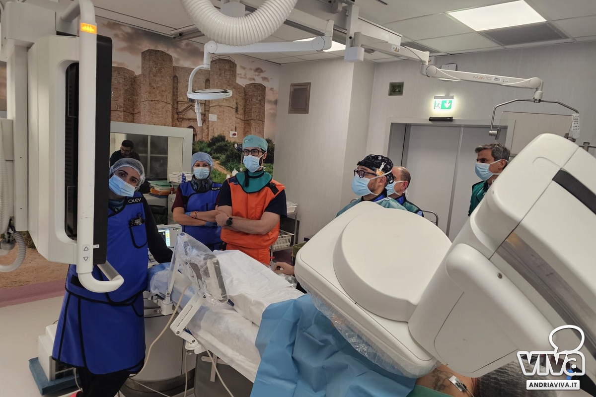Nei giorni scorsi, nella sala Angiografica dell'ospedale "Lorenzo Bonomo" di Andria, medici specialisti provenienti anche da altre regioni italiane hanno partecipato ad una giornata di osservazione e formazione delle tecniche operatorie utilizzate dai medici neuroradiologici interventisti in merito a procedure innovative mini-invasive percutanee di ablazione discale.