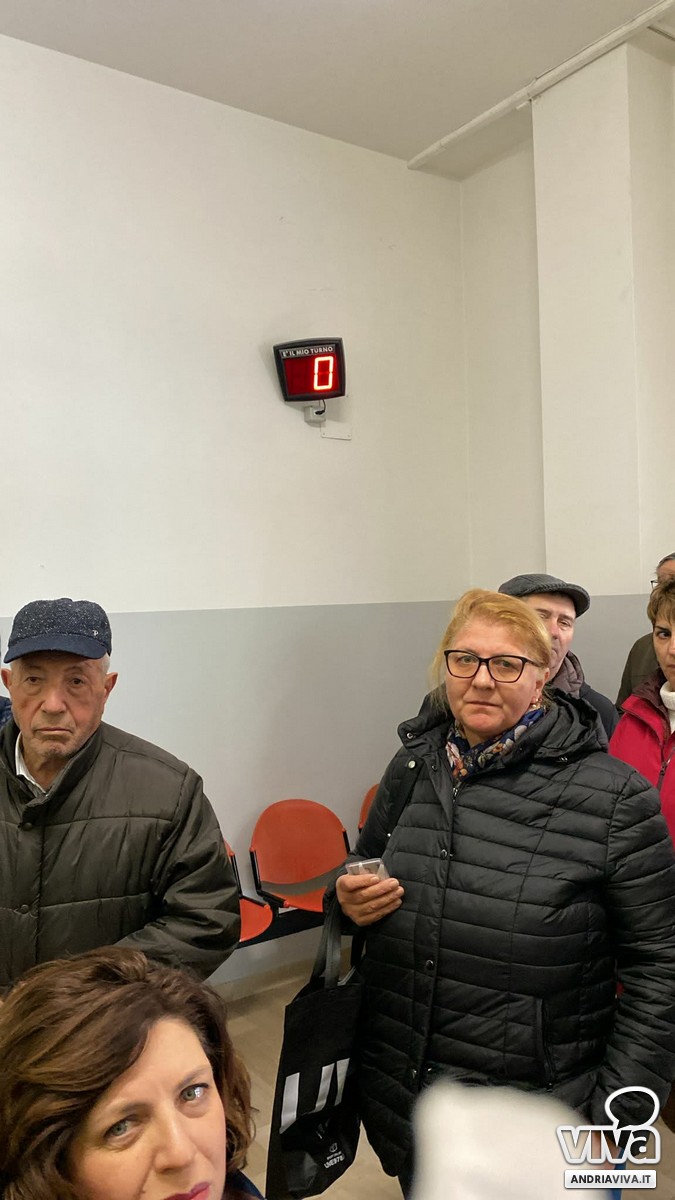 Ad incidere sulle tempistiche a rilento, inoltre, anche un guasto al sistema elettronico salta-coda che ha ulteriormente spazientito i cittadini andriesi in coda, molti dei quali in attesa all'esterno della struttura con le temperature degli ultimi giorni ancora rigide.