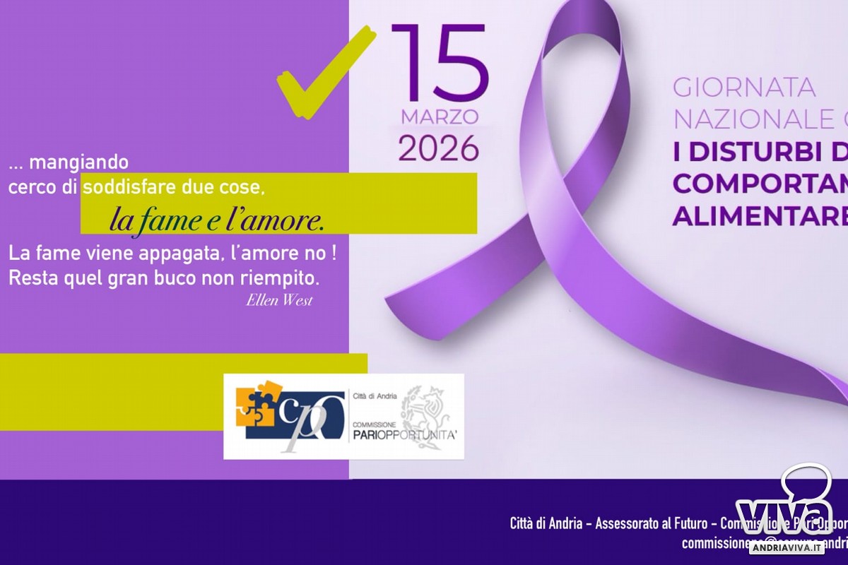 La regia di Michele Pinto guiderà il progetto con uno sguardo sensibile e realistico, attento alla dimensione psicologica dei personaggi e alla rappresentazione autentica del disagio adolescenziale. «Anche quest'anno il Comune di Andria aderisce alla Giornata dei DCA per accendere i riflettori su un tema che si insinua nelle famiglie in maniera subdola – spiega l'Assessora Di Leo - Con un segno visivo, la luce lilla su Palazzo di Città ed un prodotto come quello del cortometraggio Andria sceglie di parlare di questi disturbi. Il cortometraggio vuole sensibilizzare il pubblico, diffondendo la cultura dell'attenzione e della prevenzione sui DCA tra i giovani, ma anche in tutti quei contesti a loro vicini: famiglia, scuola, palestre. È importante saper riconoscere i segnali del disagio, non minimizzare e sapere a chi chiedere aiuto. Il percorso verso la guarigione inizia proprio dalla consapevolezza e dall'incontro con un adulto capace di ascoltare e sostenere, oltre che con i servizi competenti della ASL BT, come ad esempio l'ambulatorio dei DCA che ha sede a Trani». Le riprese del corto prenderanno il via nei prossimi giorni ad Andria, coinvolgendo giovani talenti del territorio e rafforzando il ruolo del cinema come strumento culturale e sociale capace di accendere i riflettori su tematiche altrimenti difficili da affrontare.