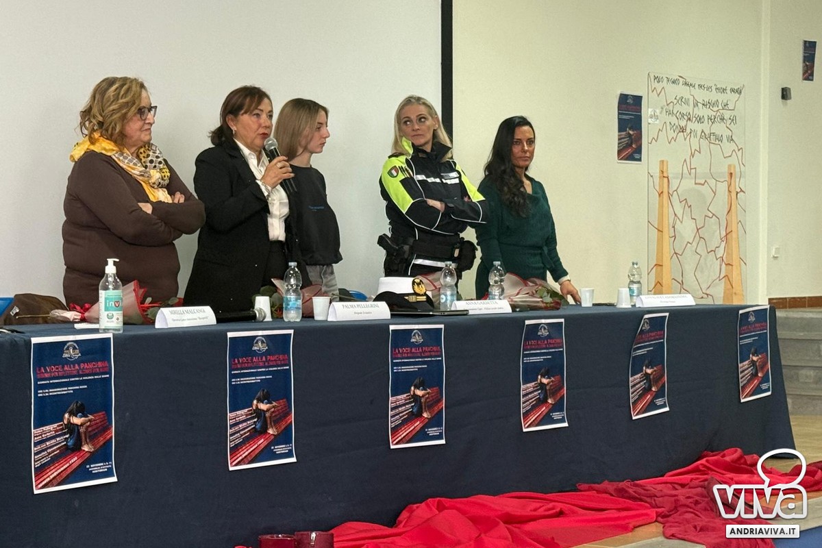 In auditorium si è svolto un secondo momento di riflessione con gli interventi del capo Ispettore e operatrice codice Rosso Anna Garbetta, la psicologa forense Casamassima Annalisa e l'operatrice centro Antiviolenza Riscoprirsi Mirella Malcangi.