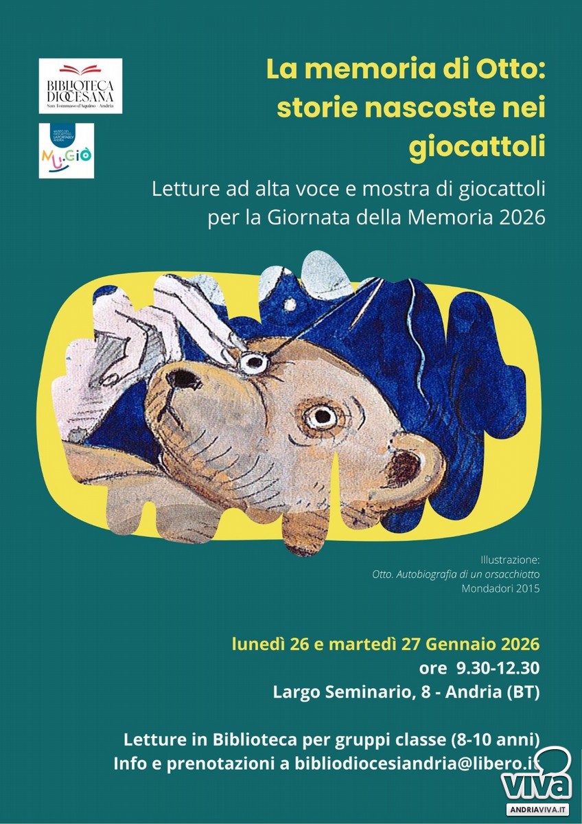 "La memoria di Otto: storie nascoste nei giocattoli" è il titolo dell'iniziativa che la Biblioteca diocesana "San Tommaso d'Aquino"e MuGiò ed il Museo del giocattolo Laportablv propongono, nelle giornate del 26, 27 e 28 gennaio, per il Giorno della Memoria 2026.