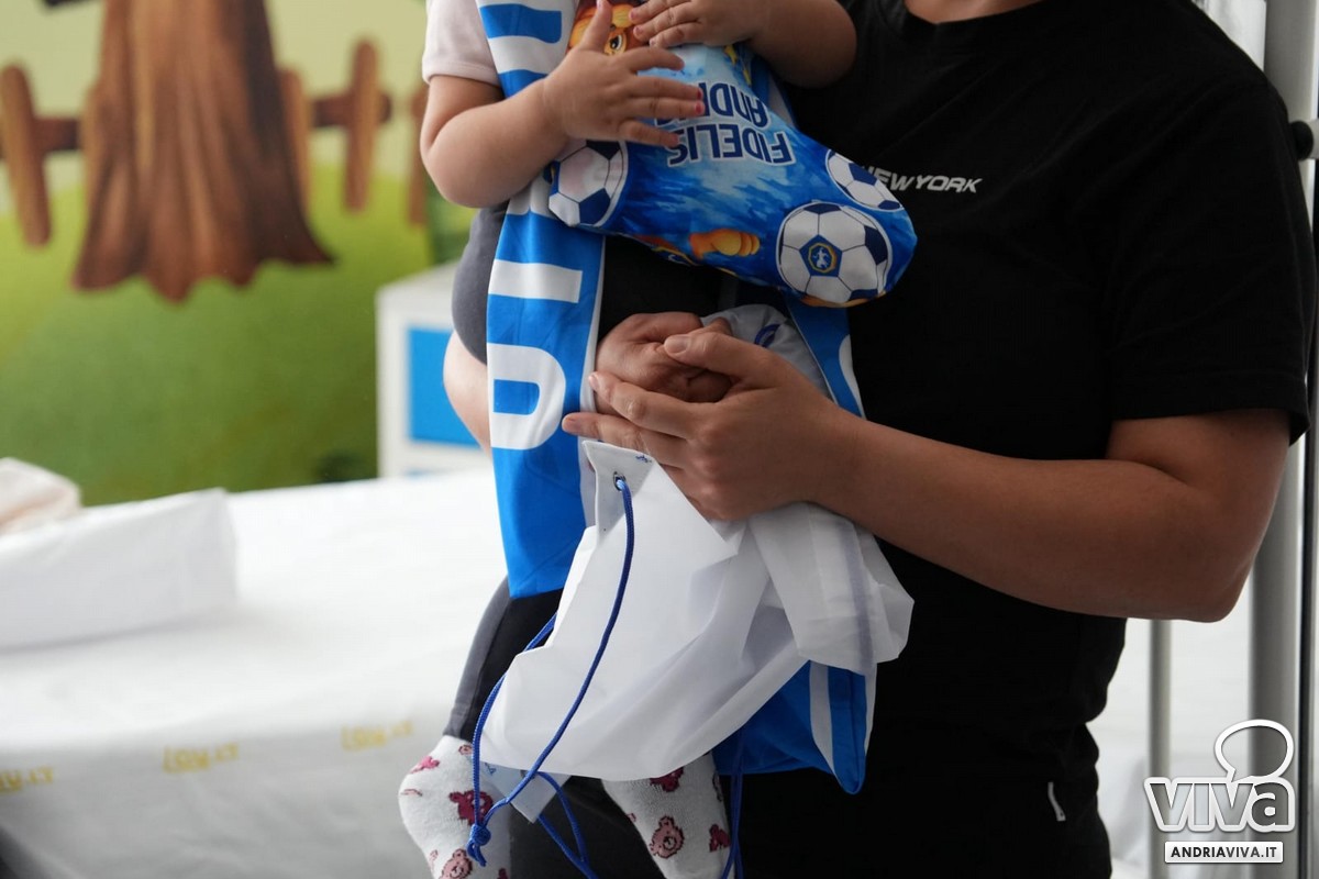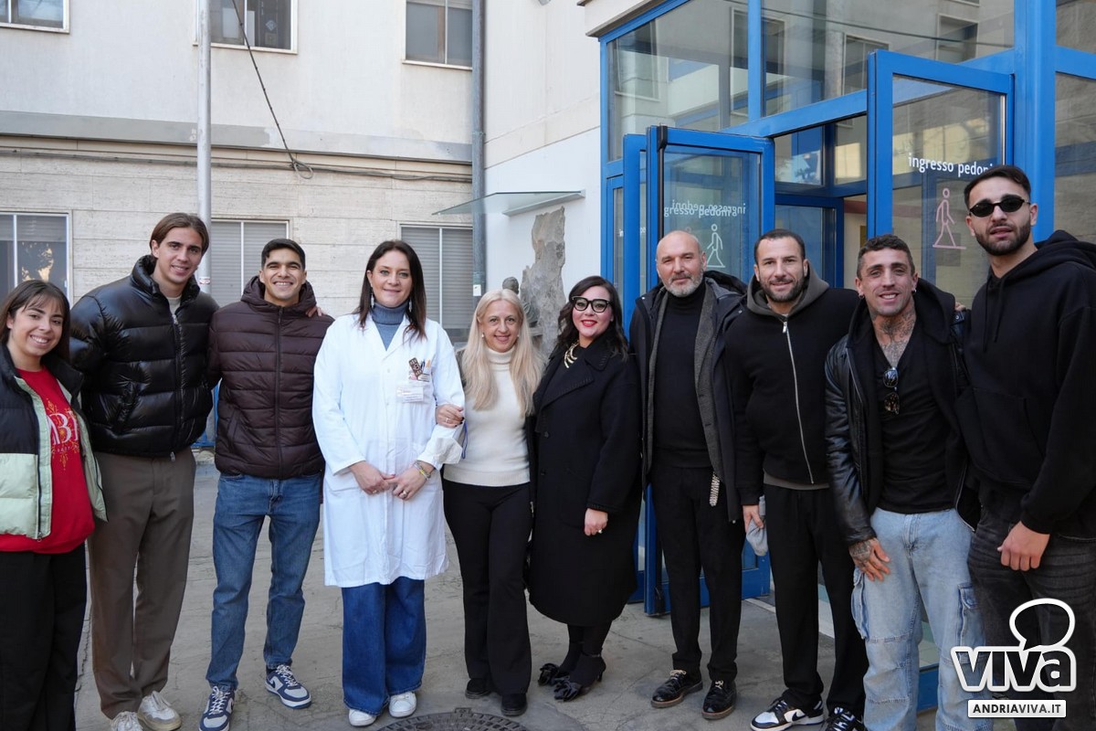 Jimmy Allegrini, Carmine Giorgione, Ciro Cipolletta, Zakaria Daqoune e Matteo Ronchi sono stati i cinque giocatori biancazzurri, in rappresentanza di tutta la squadra calcistica andriese, che hanno contribuito ad alleviare la degenza in ospedale dei bimbi regalando loro dolcezza e leggerezza.