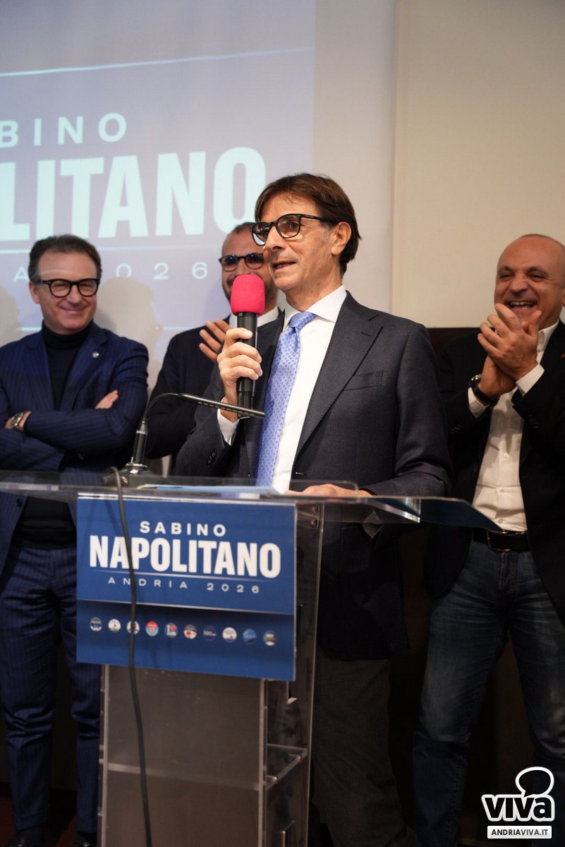 Con queste parole, il candidato sindaco del centrodestra Sabino Napolitano si è presentato alla città di Andria e alla stampa. E' lui il candidato sindaco unanimemente individuato da Fratelli d'Italia, Forza Italia, Lega, Noi Moderati, Liberali Riformisti-Nuovo PSI, Puglia Popolare, Movimento Pugliese, UdC, Io Sud e Generazione Catuma, in vista delle elezioni amministrative di Andria nella prossima primavera. Il grande entusiasmo di una Sala Attimonelli traboccante di gente, ha accompagnato l'intera cerimonia.