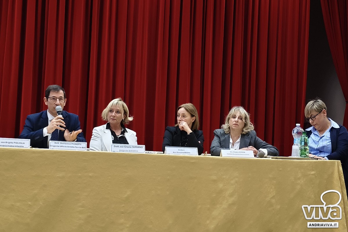 Gli interventi tecnici del Dott. Domenico Pignotti (Dirigente Ufficio Ambito Territoriale BAT), della Dott.ssa Brigida Figliolia (Neuropsichiatra Infantile ASL BAT) e dell'Ins. Angela Simone hanno offerto strumenti concreti per passare "dalla diagnosi alla didattica", definendo percorsi di supporto reali per i ragazzi con autismo.