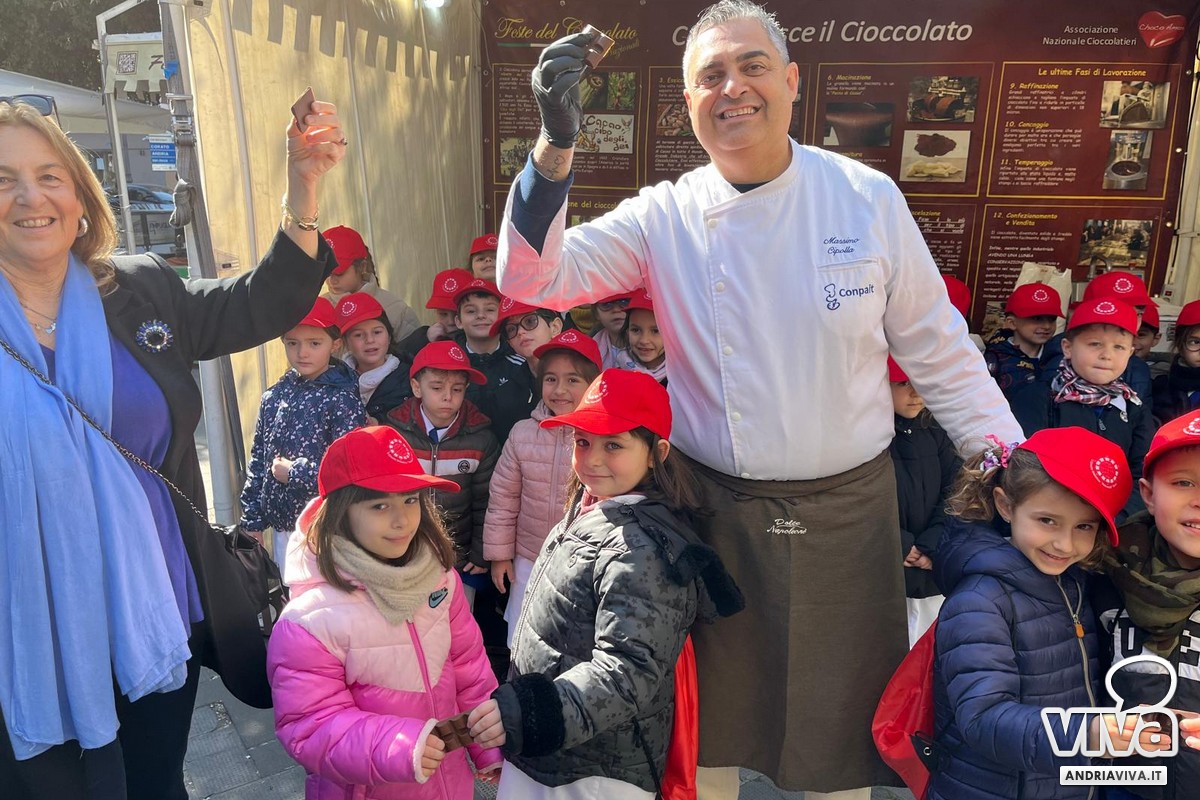 L'inaugurazione si è svolta in un clima di entusiasmo e condivisione: a dare simbolicamente il via alle tre giornate sono stati i Maestri Cioccolatieri, insieme ai bambini della scuola tranese Petronelli, spezzando una simbolica tavoletta di cioccolato tra applausi e curiosità. Presente per il comune di Trani l'Assessore Lucia De Mari.