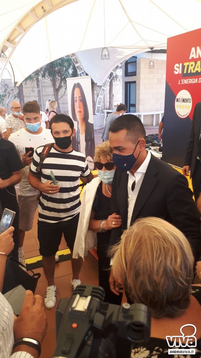 Il plenipotenziario pentastellato alla Farnesina è giunto sabato 5 settembre nella città Fidelis, seconda tappa dell'odierno tour che, fino a domenica 6 settembre, lo vede impegnato nella campagna per il referendum e le elezioni amministrative in Puglia. Di Maio è arrivato ad Andria accompagnato dalla candidata alla Regione Puglia Antonella Laricchia e dopo che, questa mattina, era stato nel capoluogo della Capitanata per incontrare diverse aziende dell'area.