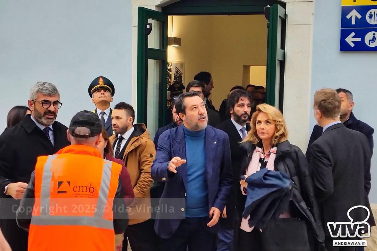 Si è svolto questa mattina ad Andria il sopralluogo tecnico al cantiere dell'interramento della linea ferroviaria, con una prima visita alla quasi ultimata stazione di Andria Centro. All'iniziativa ha partecipato il vicepresidente del Consiglio dei Ministri e ministro delle Infrastrutture e dei Trasporti, Matteo Salvini, accolto dalle istituzioni locali e regionali.