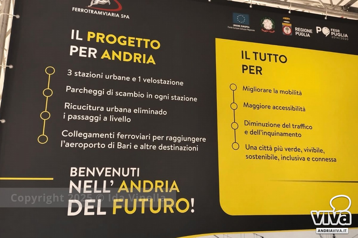 Il presidente di Ferrotramviaria, Giuseppe Pavoncelli, ha illustrato l'avanzamento dei lavori: «Si tratta di un progetto articolato, che prevede vari interventi. Oggi ad Andria siamo impegnati nell'interramento della ferrovia: abbiamo eliminato quattro passaggi a livello, creato piste ciclabili, rotatorie e ricucito la città in quattro punti carrabili e quattro ciclopedonali. Un intervento imponente che ha coinvolto Regione, cittadinanza e Comune».