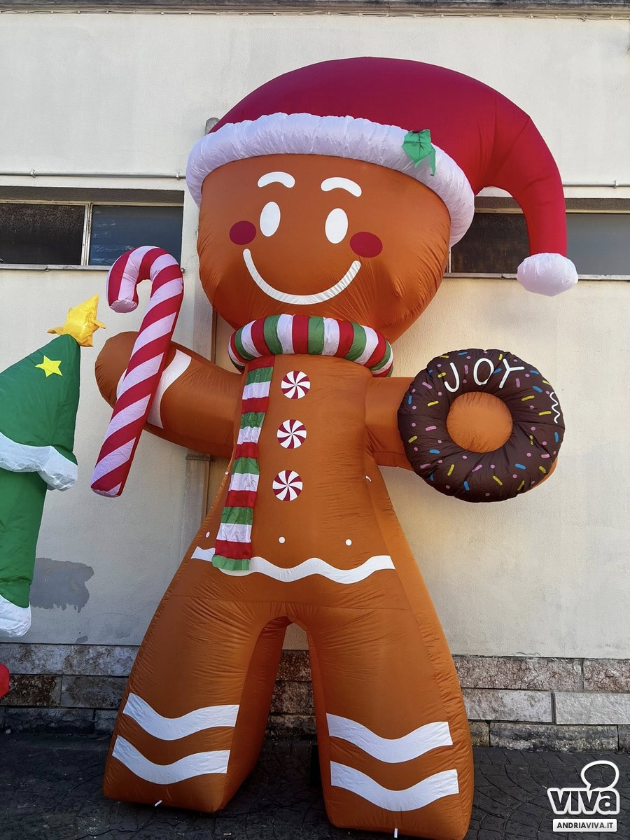 Appena oltre il cancello, gli alunni vengono accolti da grandi decorazioni gonfiabili: un enorme omino di pan di zenzero, alberi di Natale scintillanti, pupazzi di neve, un suggestivo arco natalizio e persino la slitta di Babbo Natale trainata dalle renne posizionata sul tetto dell'edificio principale. Le porte d'ingresso, decorate con pacchetti regalo e motivi natalizi, trasformano l'intera facciata della scuola in una vera scenografia delle feste.