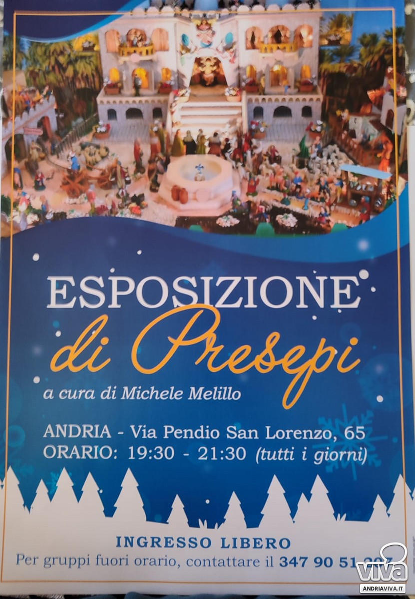 Ritorna la tradizione dei presepi ad Andria, grazie alla maestria e la passione del diacono Michele Melillo. Il simbolo per eccellenza del Natale cattolico racchiuso in un luogo della nostra città. Parliamo dei presepi artistici realizzati ad Andria in Pendio San Lorenzo 65 dal Diacono Melillo, autentiche opere d'arte che trasudano storia e tradizioni.