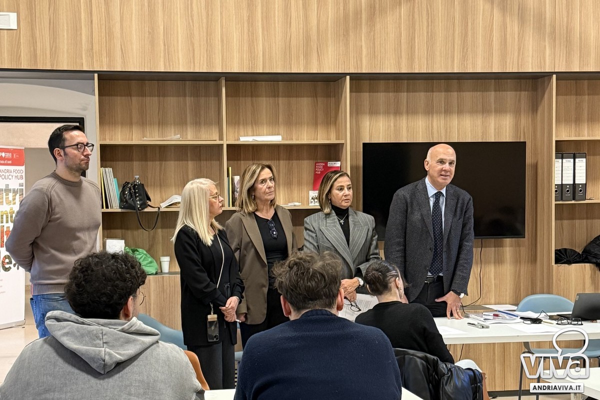 La Prof.ssa Lucrezia Maria De Cosmo e il Prof. Fabrizio Baldassarre dell'Università degli Studi di Bari, le Prof.sse Silvia D'Avanzo e Grazia de Lucia per la scuola Capofila I.I.S.S. "Giuseppe Colasanto" di Andria e Leonardo Volpicella e Vincenzo Miracapillo, dal tessuto imprenditoriale locale.