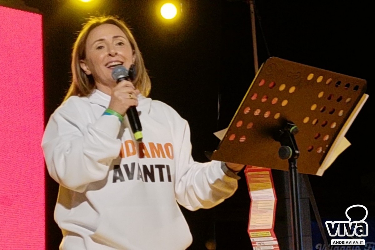 Piazza gremita per la Sindaca: dai 90 milioni di debiti alla "Città Bambina". Svelato il programma delle 10 "A": «Andria non torna indietro»