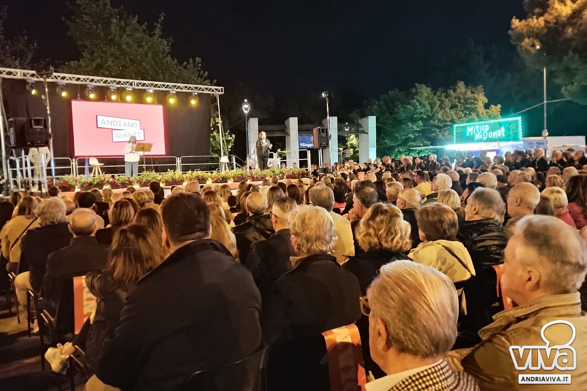 Tra gli stand dei vari partiti, la sensazione dominante è stata quella di una comunità che si riconosce in un progetto inclusivo. La sfida per il 24 e 25 maggio è lanciata con un entusiasmo contagioso e un monito che è diventato un coro: "Andria non torna indietro". Per Giovanna Bruno, l'unico passo indietro consentito è quello per prendere la rincorsa, perché la città, dopo essere stata ferma troppo a lungo, ora ha finalmente ripreso a correre.