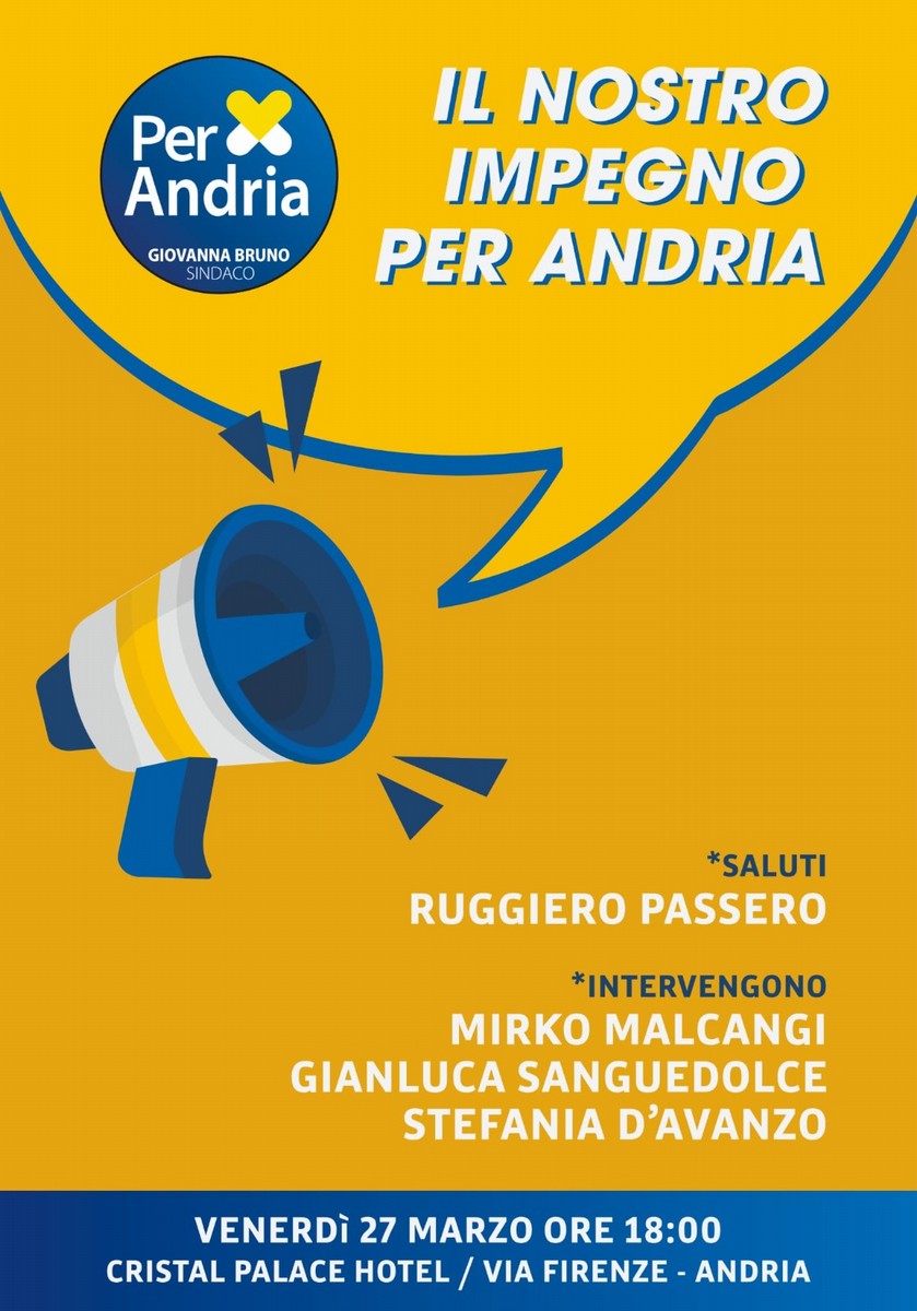 Bonomo di Andria. Parteciperanno all'evento il consigliere regionale