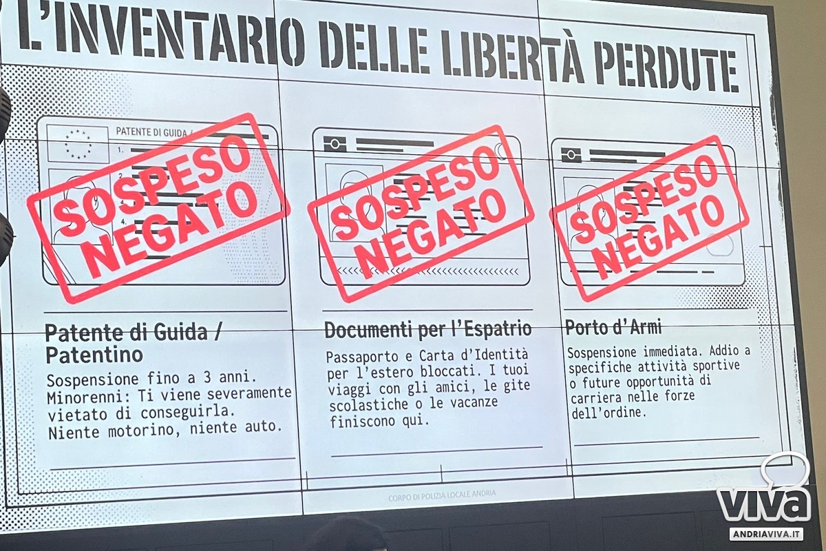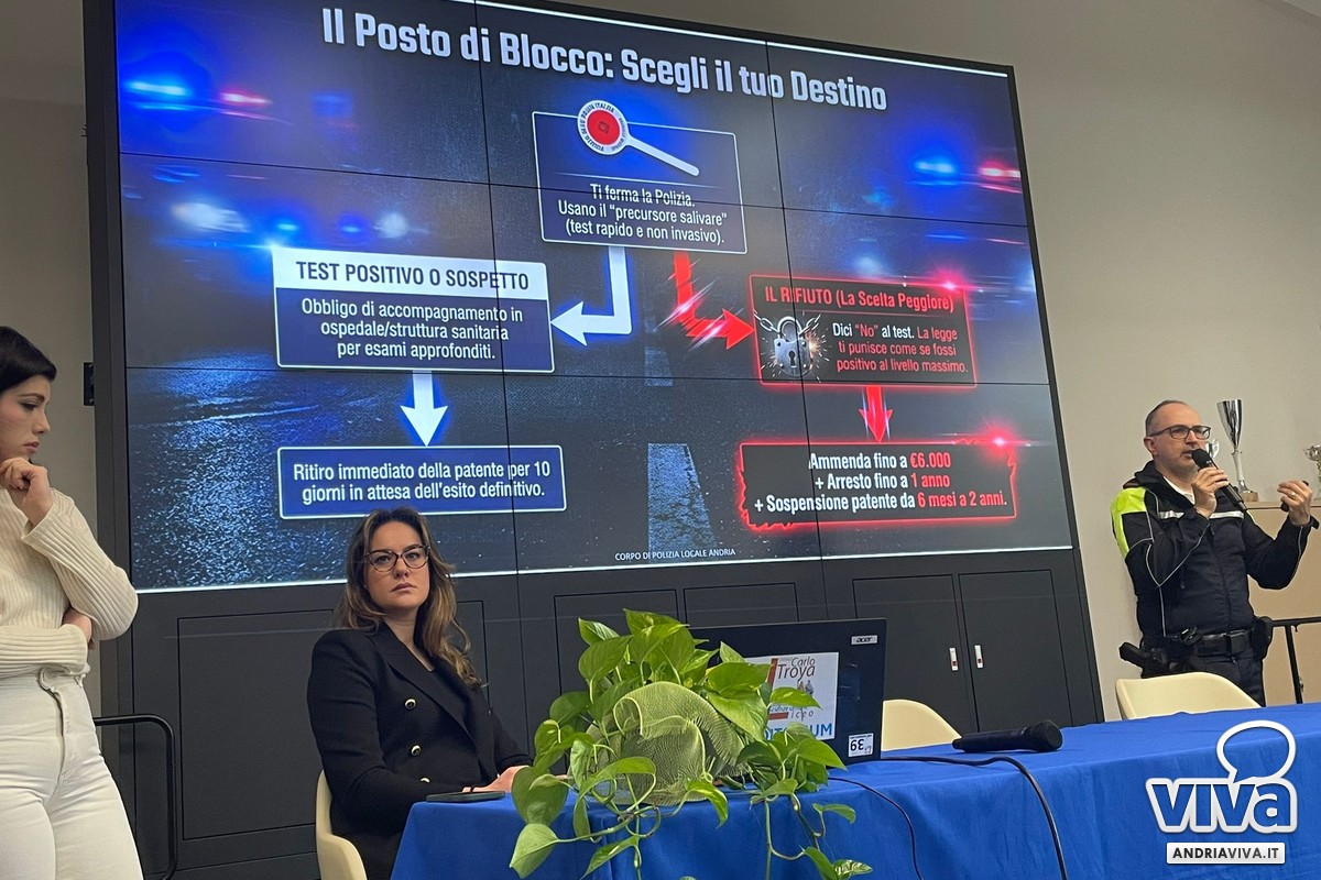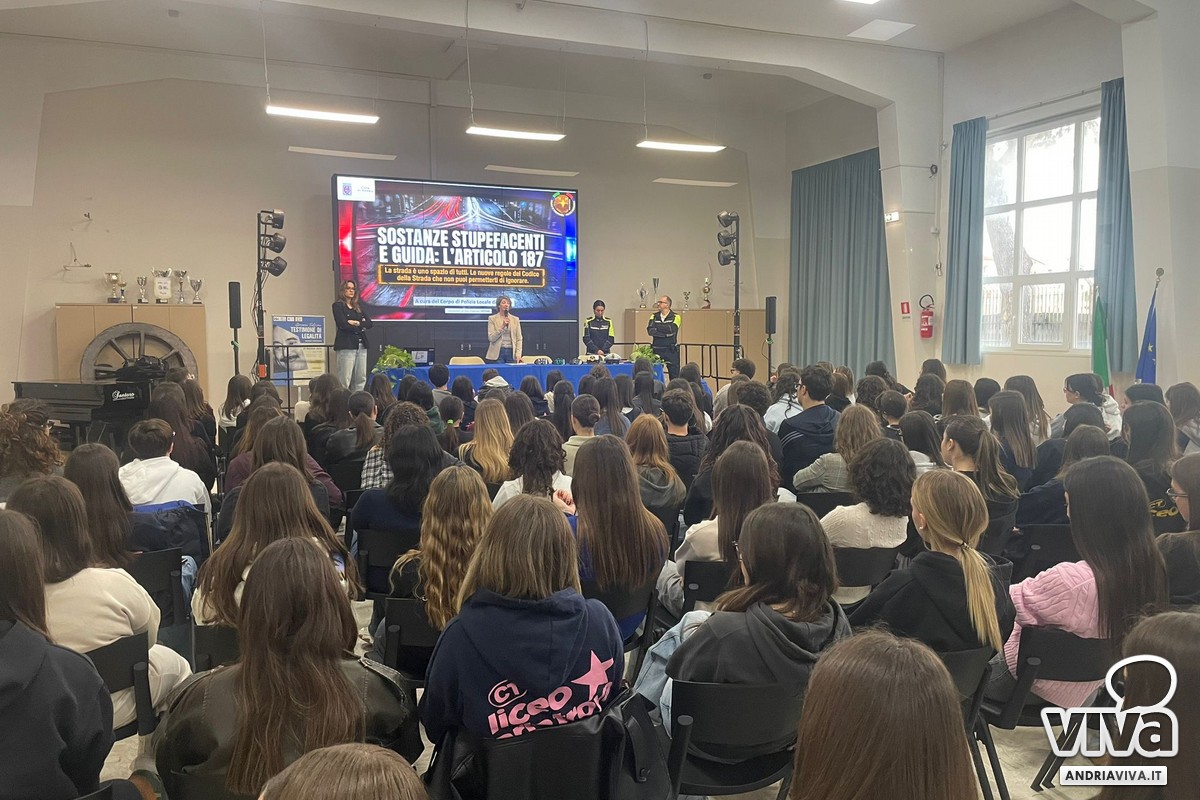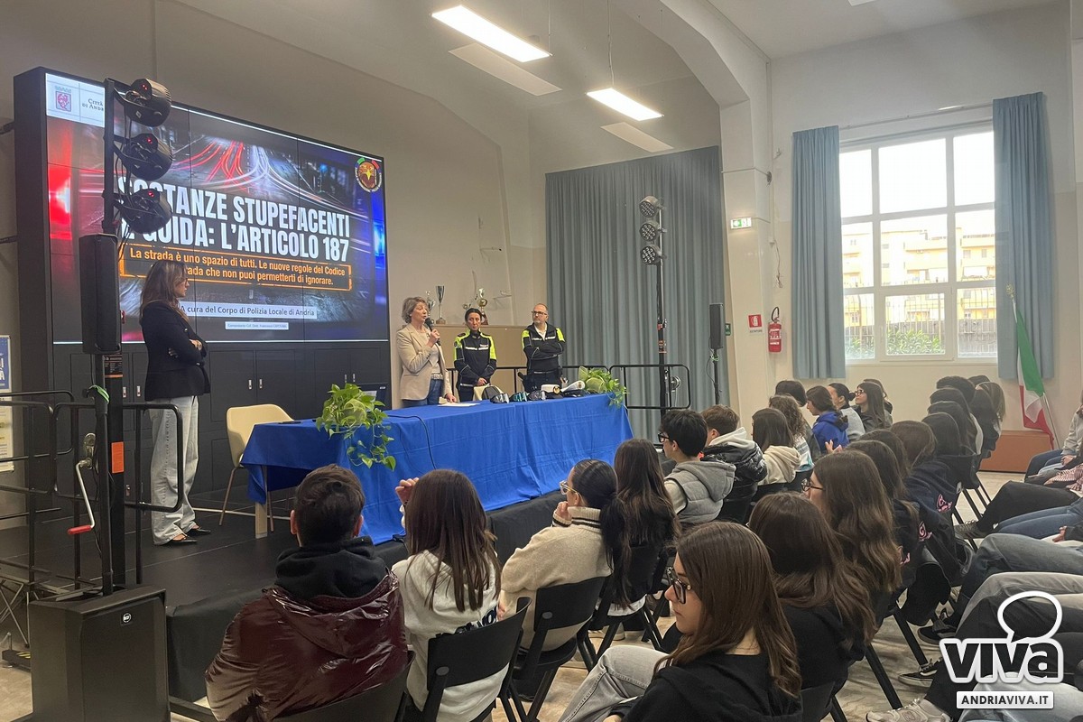 A portare la voce delle istituzioni sono stati l'Ispettore Grazia Forlano e il Vice Sovrintendente Francesco Patruno della Polizia Locale di Andria, che hanno illustrato con competenza le conseguenze amministrative e penali legate all'uso di sostanze psicotrope, con particolare attenzione ai rischi gravissimi che derivano dalla guida in stato di alterazione. Parole chiare e dirette, pensate per parlare alla realtà quotidiana di ragazzi di sedici anni che cominciano ad esplorare il mondo con crescente autonomia e che presto si troveranno a fare i conti in prima persona con le responsabilità della strada: un linguaggio adulto e rispettoso, ma senza sconti. A completare il quadro sono intervenute la dottoressa Agata Massaro, psicologa, e la dottoressa Claudia Carulli, assistente sociale, entrambe del Dipartimento Dipendenze Patologiche della ASL-BT. Le due professioniste hanno guidato gli studenti alla comprensione dei meccanismi biologici e psicologici della dipendenza: come una sostanza può alterare il funzionamento del cervello, modificare le priorità, trasformare una scelta in una trappola. Un approfondimento scientifico reso accessibile, che ha mostrato ai ragazzi quanto sia sottile il confine tra curiosità e rischio.