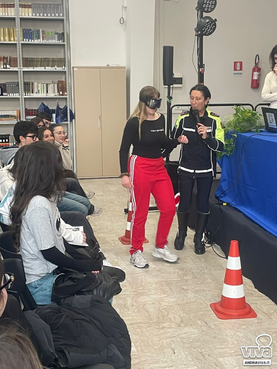 Il momento più intenso della mattinata è stato senza dubbio la simulazione pratica. Attraverso visiere appositamente modificate per riprodurre la percezione alterata tipica di chi è sotto l'effetto di droghe, gli studenti hanno sperimentato in prima persona la distorsione della realtà, la perdita di coordinazione, l'incapacità di valutare le distanze. Pochi minuti di esperienza diretta che hanno detto più di qualsiasi discorso. Ed è proprio questo l'obiettivo che una scuola davvero educativa si pone: non trasmettere nozioni, ma suscitare consapevolezza.
