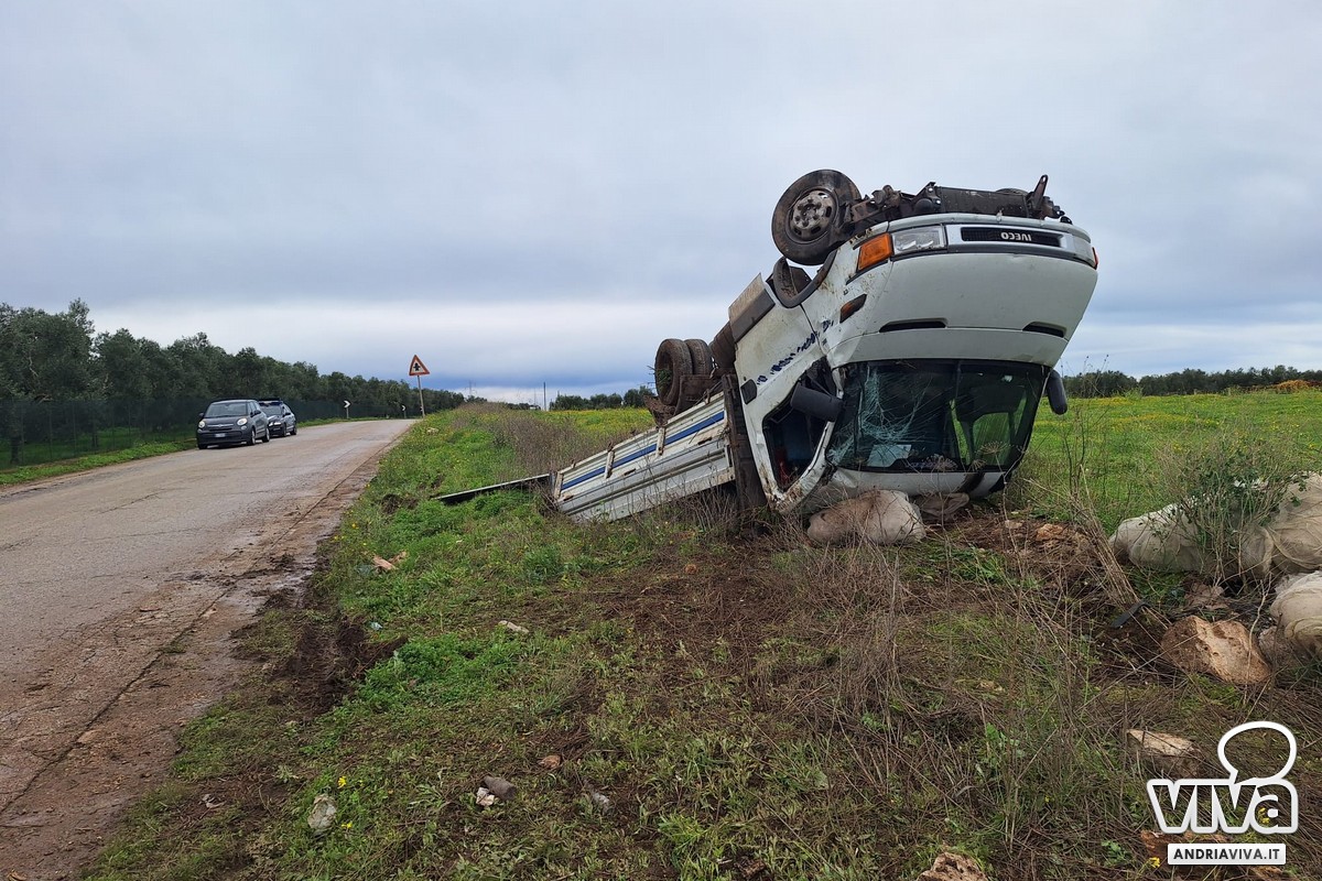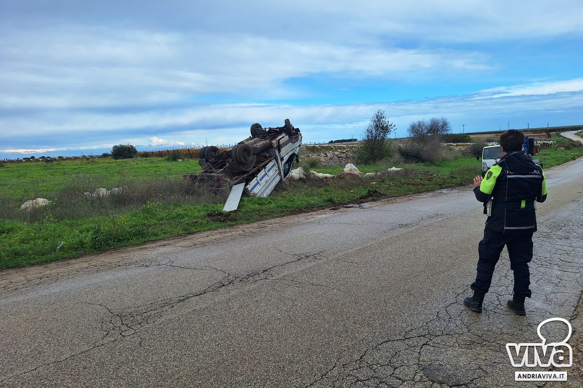 Si ribalta sulla provinciale tra Andria e Bisceglie, sul posto la Polizia locale