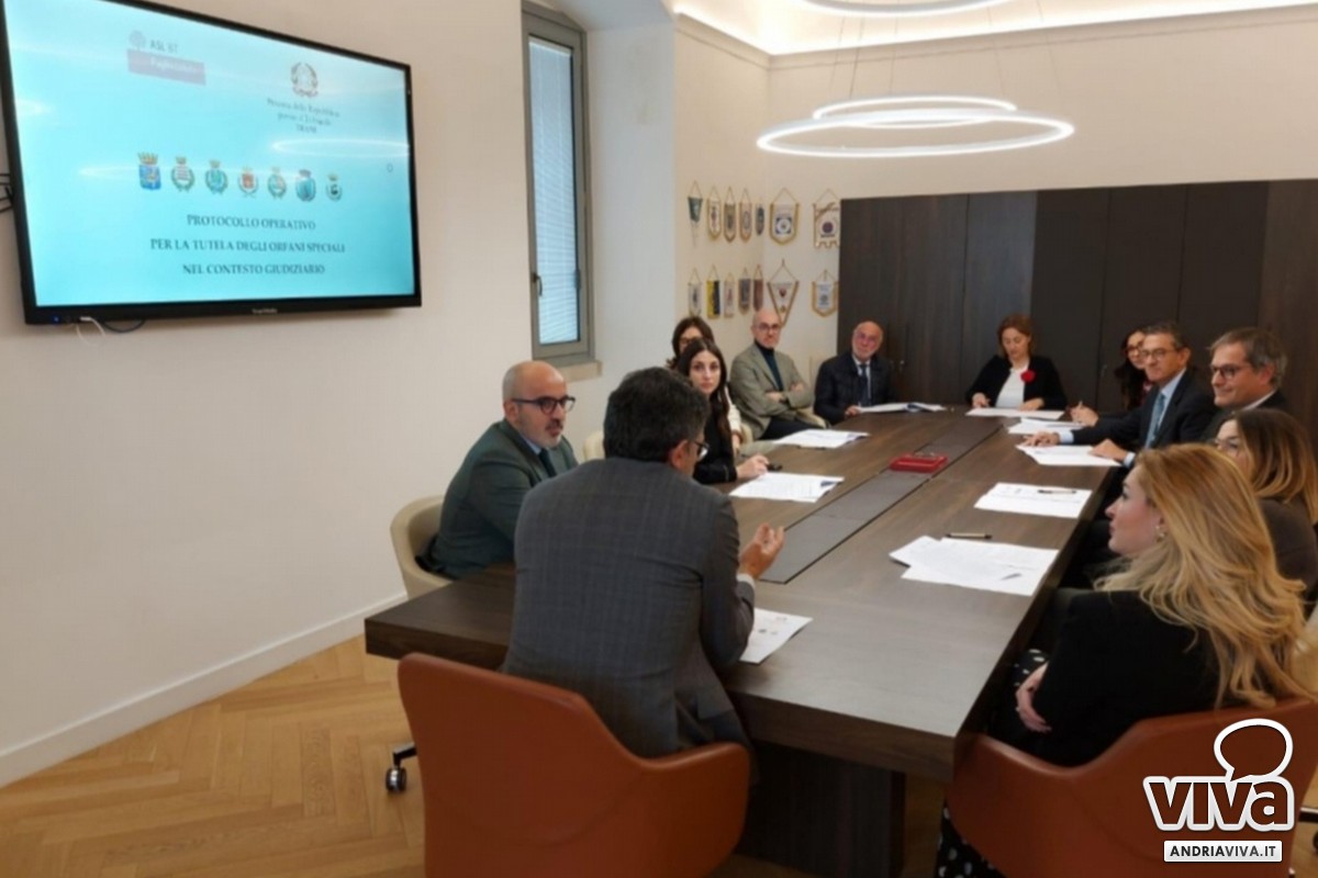 In occasione della Giornata internazionale per l'eliminazione della violenza contro le donne, presso la Procura della Repubblica di Trani è stato sottoscritto il "Protocollo per la tutela degli orfani speciali nel contesto giudiziario". Un passo importante, non un traguardo ma un punto di svolta, nato dalla collaborazione tra la Procura di Trani, la ASL BT – Centro di Cura del Trauma Interpersonale Sovradistrettuale ed i Servizi Sociali Territoriali dei Comuni di Andria, Barletta, Trani, Bisceglie, Canosa di Puglia, Minervino Murge e Spinazzola.