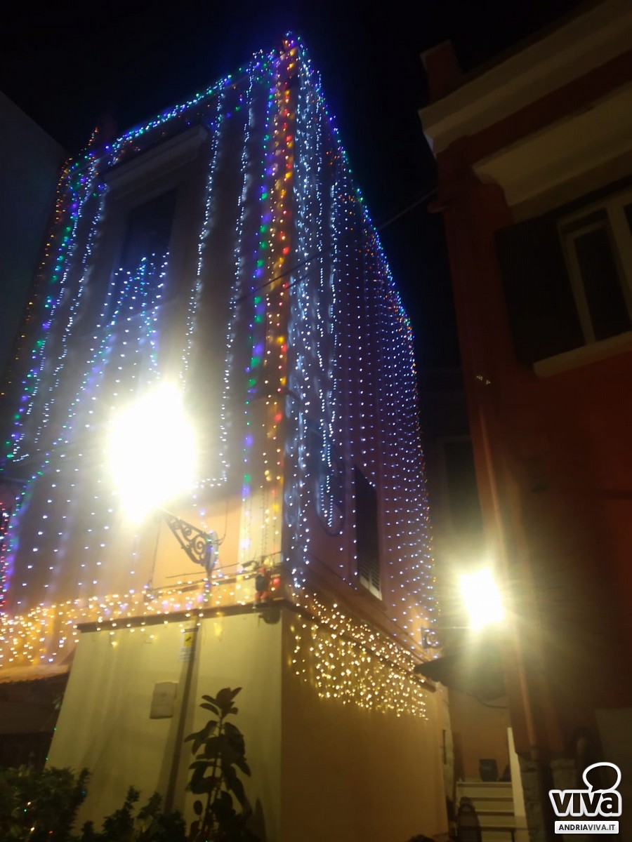 Tanti colori e sfavillanti luci per il Santo Natale al 3° vicolo Casalino grazie all'estro di Riccardo Melillo, già dipendente dell'AndriaMultiservice che con la sua passione ha reso ancora più bella a caratteristica questa parte del centro storico, sottraendola al degrado ed alla sciatteria.