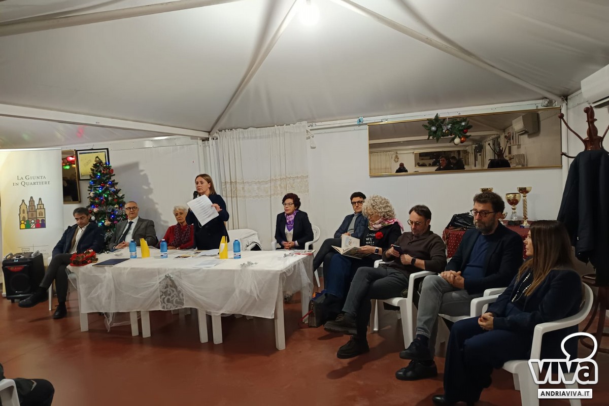 Nuovo appuntamento ad Andria con l'iniziativa della Giunta di Quartiere, appuntamento periodico organizzato dall'Amministrazione comunale come occasione di confronto diretto con i cittadini sui temi che riguardano la vita della comunità in tutti i suoi ambiti. Inoltre, è un'opportunità anche per raccogliere spunti e segnalazioni utili per il lavoro dell'ente. Dopo il borgo di Montegrosso, il Centro Storico, il quartiere San Valentino, il quartiere Fratta, Santa Maria Vetere, San Giuseppe Artigiano, Madonna della Grazia, Sant'Agostino, SS. Trinità, Sacre Stimmate, l'Esecutivo cittadino ha scelto come sede dell'incontro il quartiere Monticelli e precisamente il centro sociale Club d'Argento.