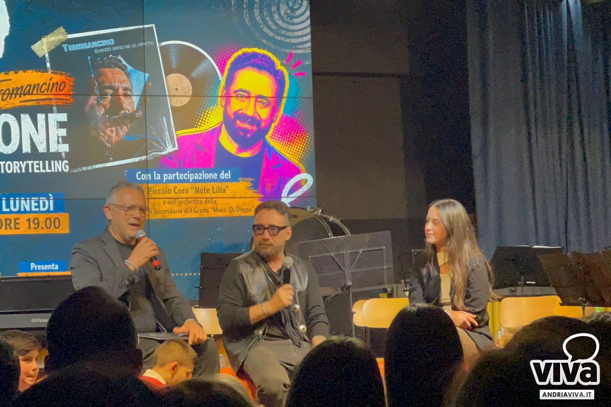 La serata, fortemente voluta dalla Dirigente dott.ssa Lilla Bruno e presentata da Carlo Sacco, è stata introdotta dal Coro diretto dal Maestro Giuseppe De Tullio, con l'esibizione di due brani significativi del repertorio dei Tiromancino: "Gennaio 2016", pezzo trainante del nuovo album, e "Sale amore e vento", uno dei classici più amati della band. Un momento che ha sicuramente emozionato, ma anche suscitato i sinceri complimenti da parte dell'artista.