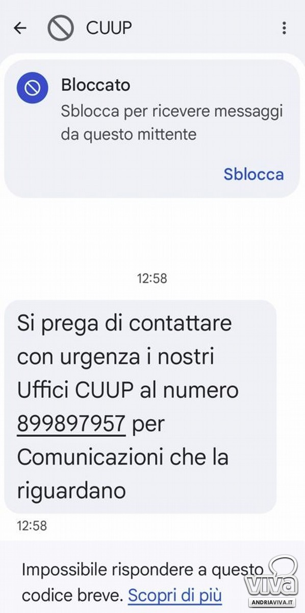 Una nuova ondata di truffe digitali sta colpendo centinaia di cittadini in Puglia, con un meccanismo noto come "smishing" (truffa via SMS). L'allerta riguarda un messaggio che invita con urgenza a contattare i "nostri Uffici CUUP" per comunicazioni importanti, suggerendo di chiamare un numero a tariffa elevata, spesso un 899. L'ennesima frode, che in questi giorni sta prendendo di mira un vasto pubblico, utilizza fraudolentemente il nome dei servizi sanitari, nonostante l'Azienda Sanitaria Locale (ASL) sia totalmente estranea alla vicenda.