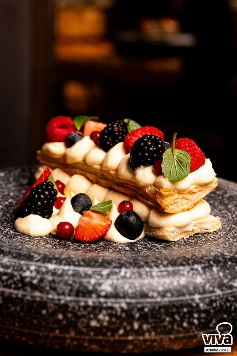 La proposta gastronomica è costruita con cura e attenzione. Si parte da piccole sfiziosità, ideali per accompagnare il vino, per poi arrivare a piatti più strutturati, con un menù che spazia con naturalezza tra terra e mare, con combinazioni pensate per incuriosire e per lasciarsi abbracciare da un buon calice scelto con attenzione.